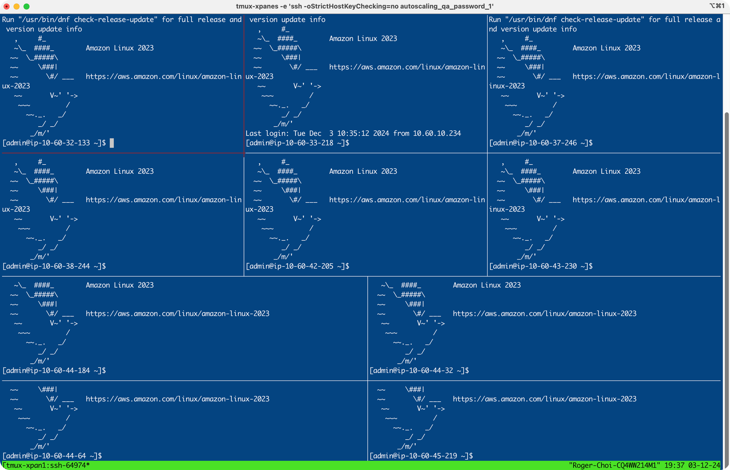 For example, suppose you need to apply a specific configuration to test servers numbered 1 through 10. Manually entering SSH commands and executing them one by one on each server would be inefficient. Instead, you can use the following method to execute the same command across multiple servers simultaneously.
