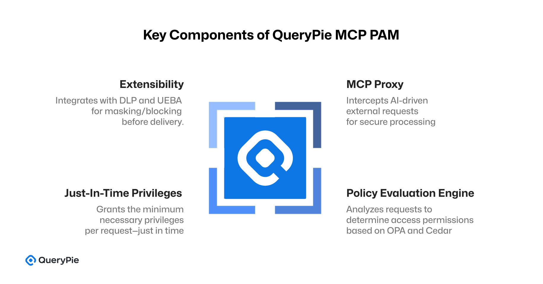 In contrast, QueryPie MCP PAM fills these gaps with a purpose-built architecture designed for real-time, policy-driven execution control:
